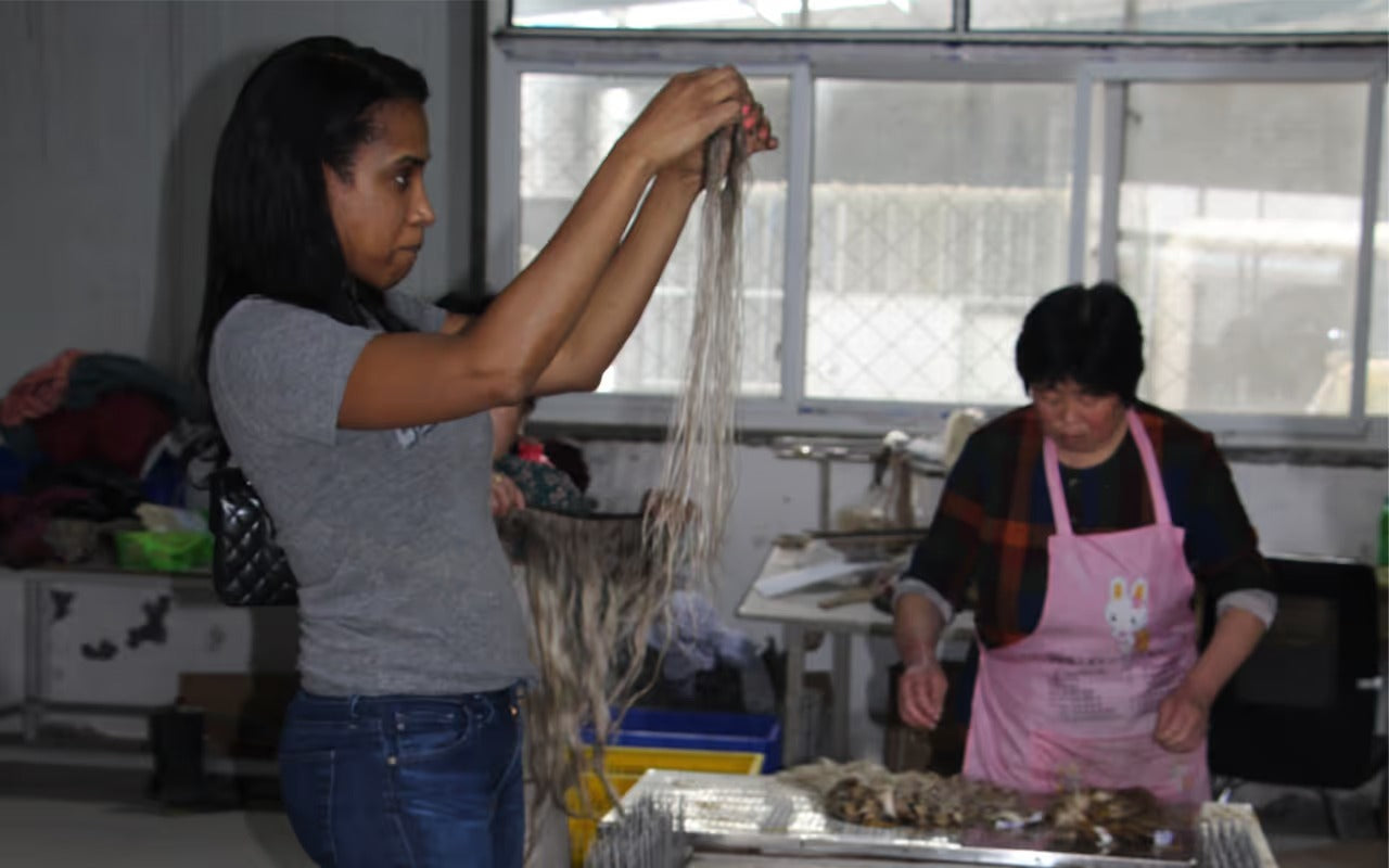 We ethically source our hair from the Western regions of China. Women are fairly compensated for their hair and then it is brought to the factory for a meticulous sorting process.