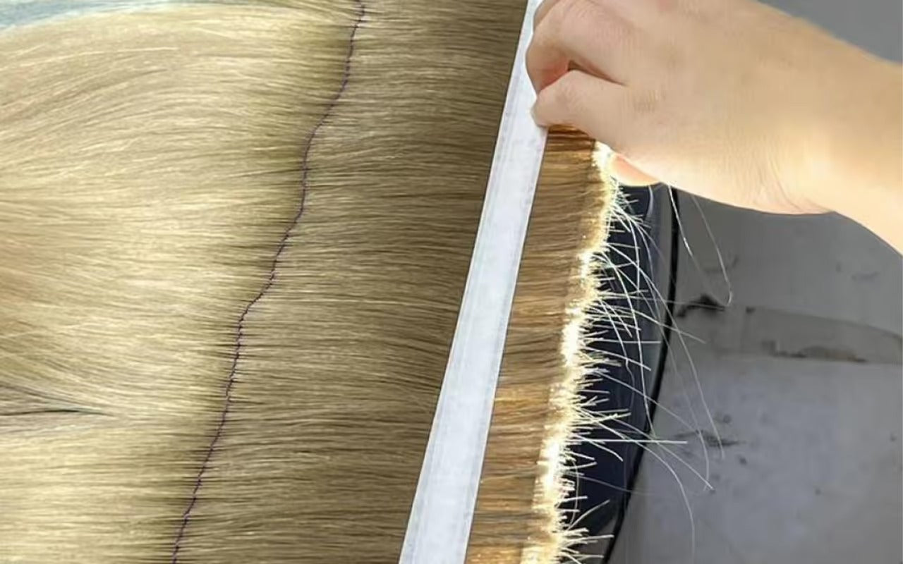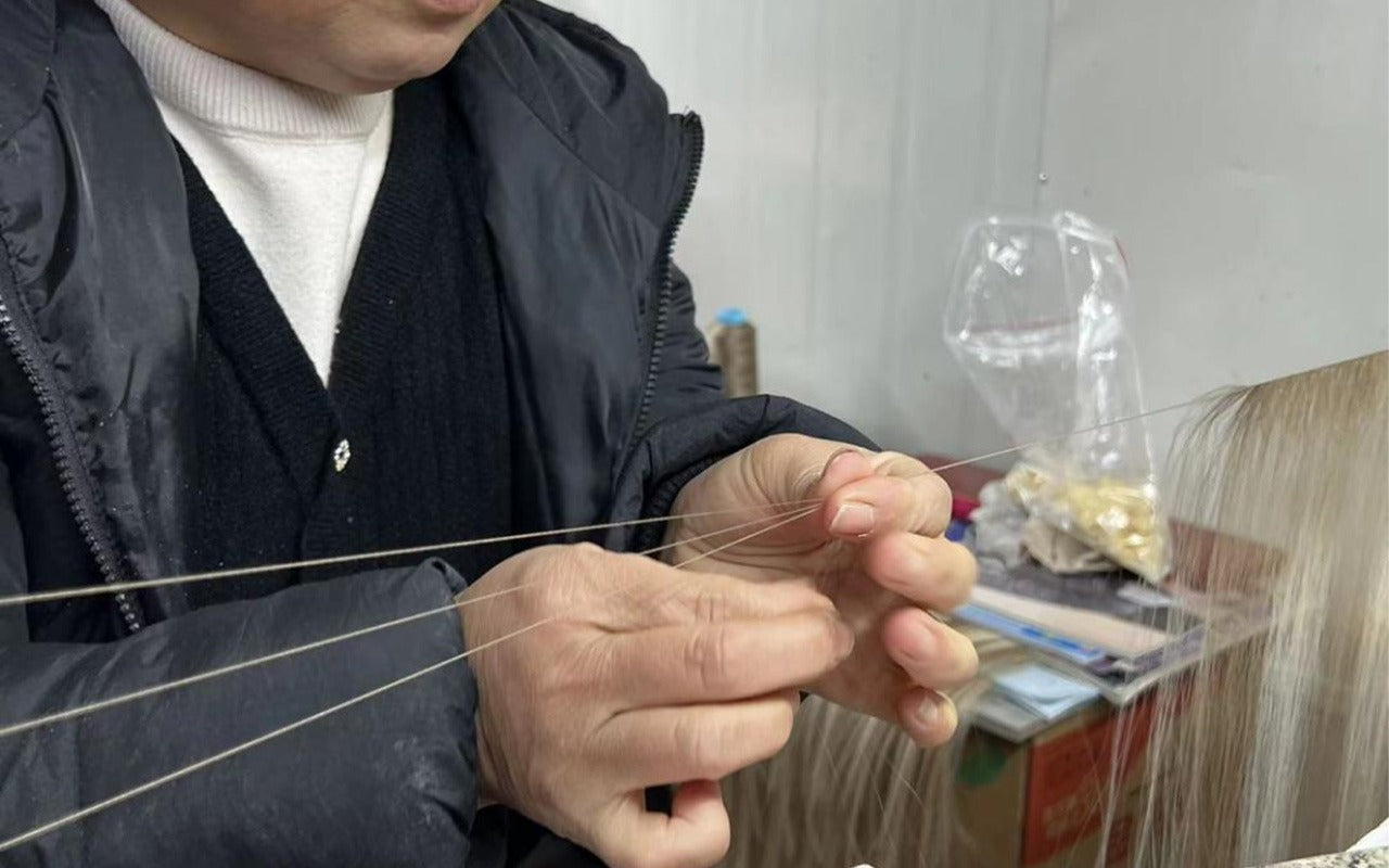 It takes a worker one hour to make each hand-tied weft — It takes one day to make one bag of hair. Our hand-tied wefts use a proprietary cut-point weft feature that allows the hand-tied weft to be cut without unraveling.