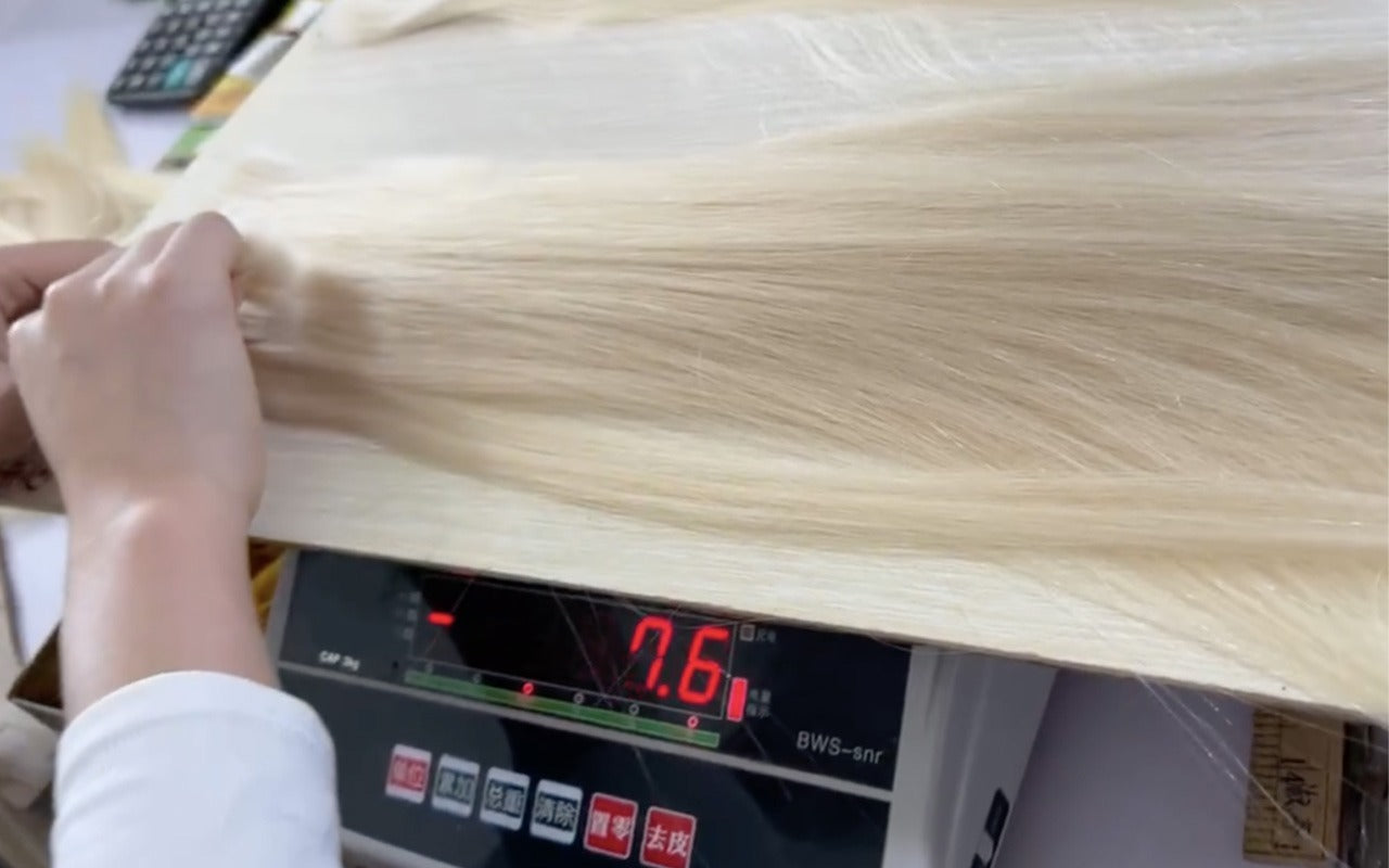 Every bundle is tested to ensure it is virgin & cuticle intact hair. The hair is meticulously sorted by whether it has a blue or red undertone to determine if it can be dyed blonde. We only use hair that can be bleached to blonde (even for dark hair), so that it remains cool over time.