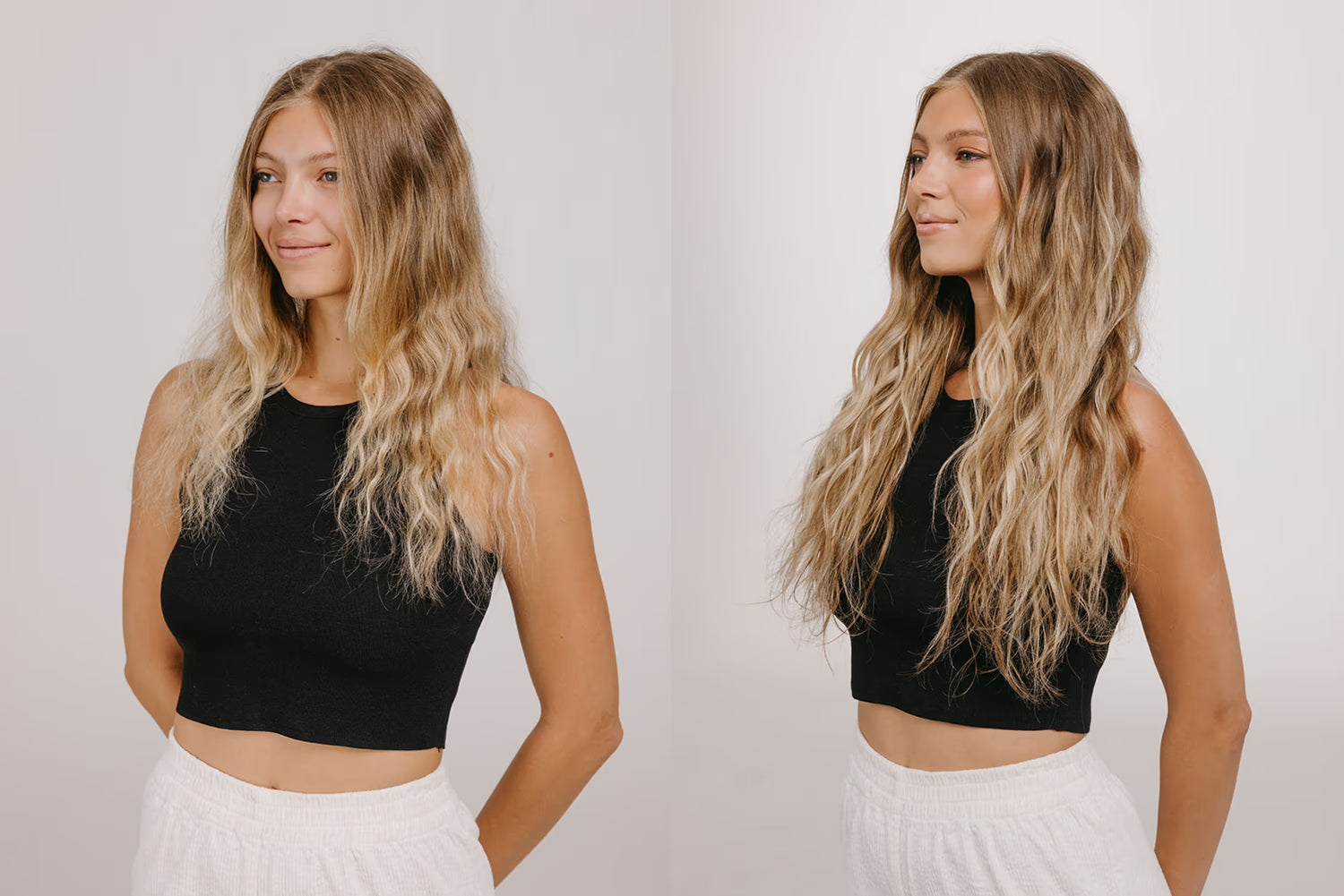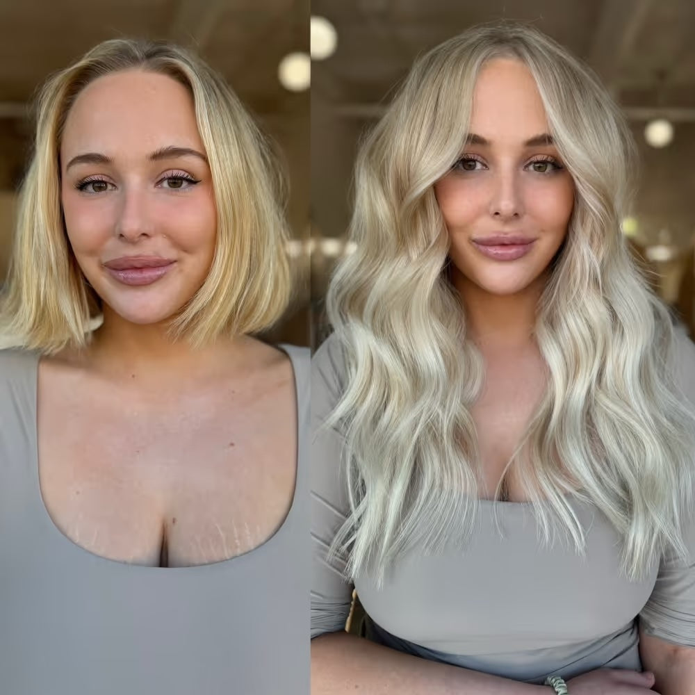 Dive into an ocean of style with our hair extensions inspired by shades of Sandy Blonde: Aspen Blonde, Mojave Blonde and St. Tropez, in 18-inch lengths.